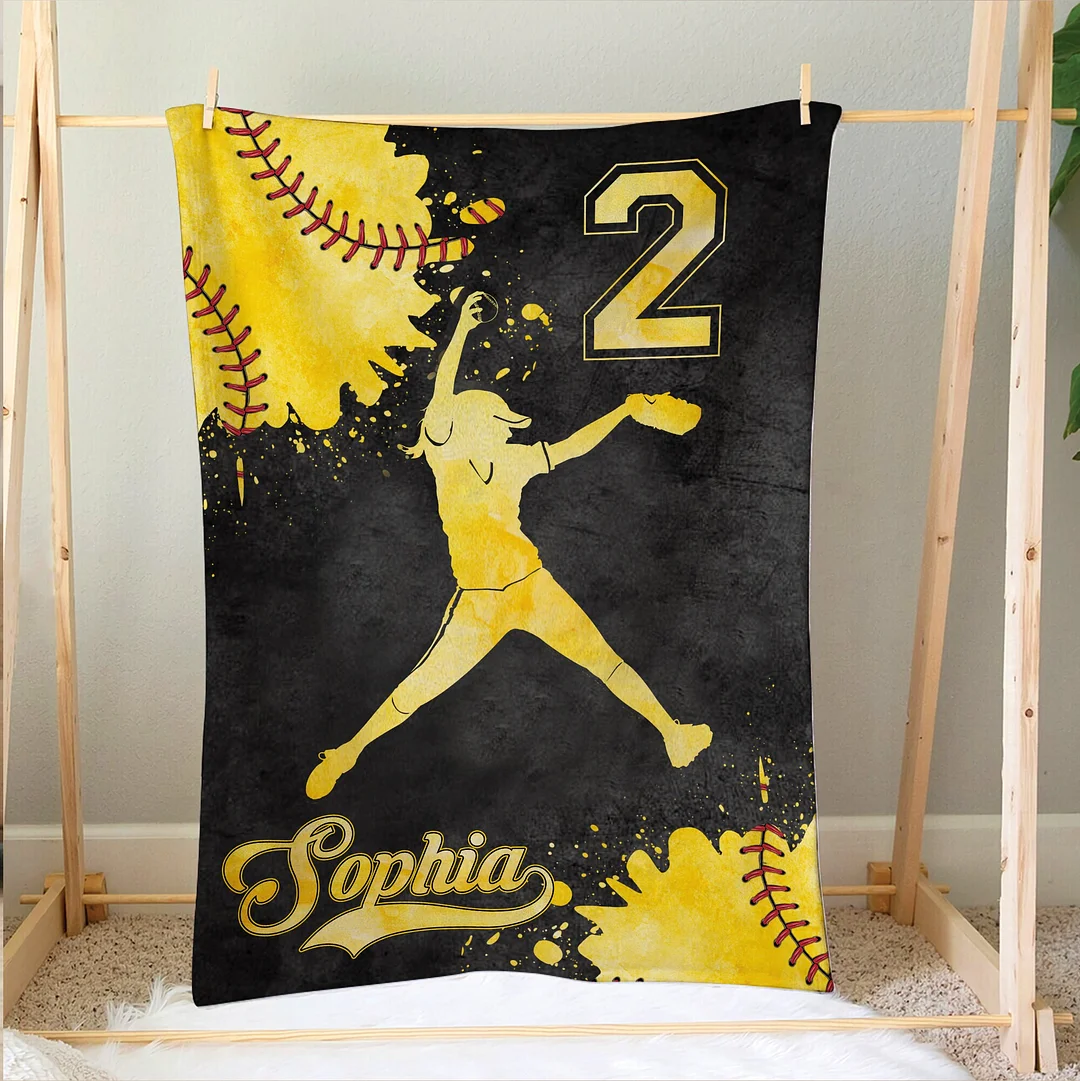 Personalized Softball Blanket, Softball Pitcher Soft Cozy Blanket |BKKid315