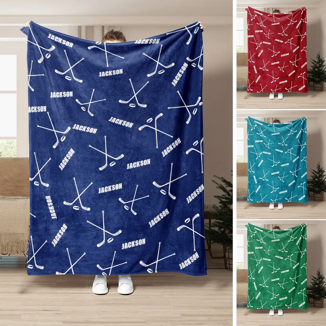 Personalized Hockey Blanket, Custom Name Soft Cozy Blankets | BKKid337