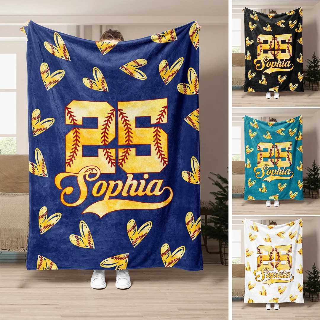 Personalized Softball Blanket, Custom Name Number Soft Cozy Blankets | BKKid357