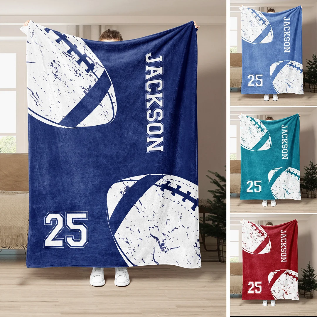 Personalized Football Blanket, Custom Name Number Soft Cozy Blankets | BKKid359