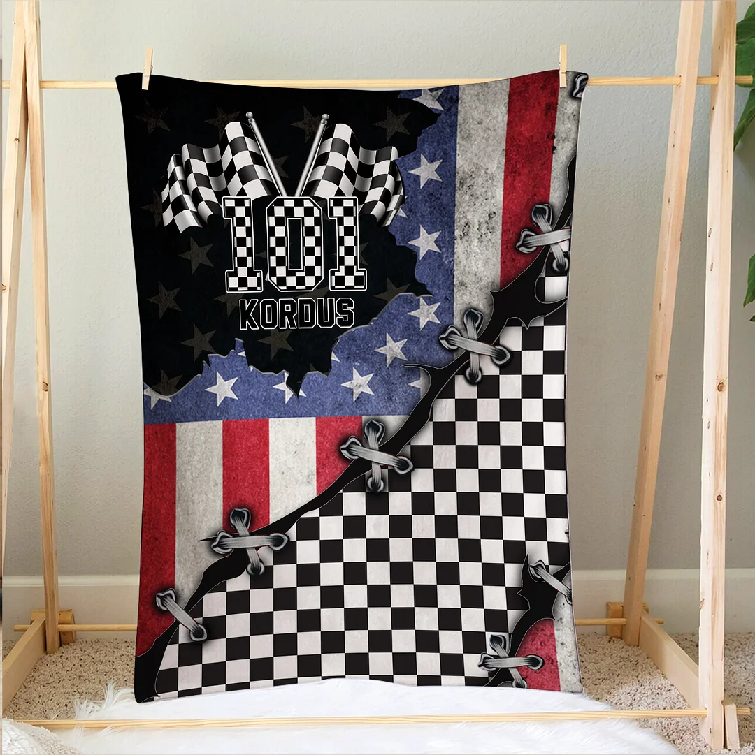 Personalized Racing Blanket, Checkered US Flag Soft Cozy Blankets | BKKid432