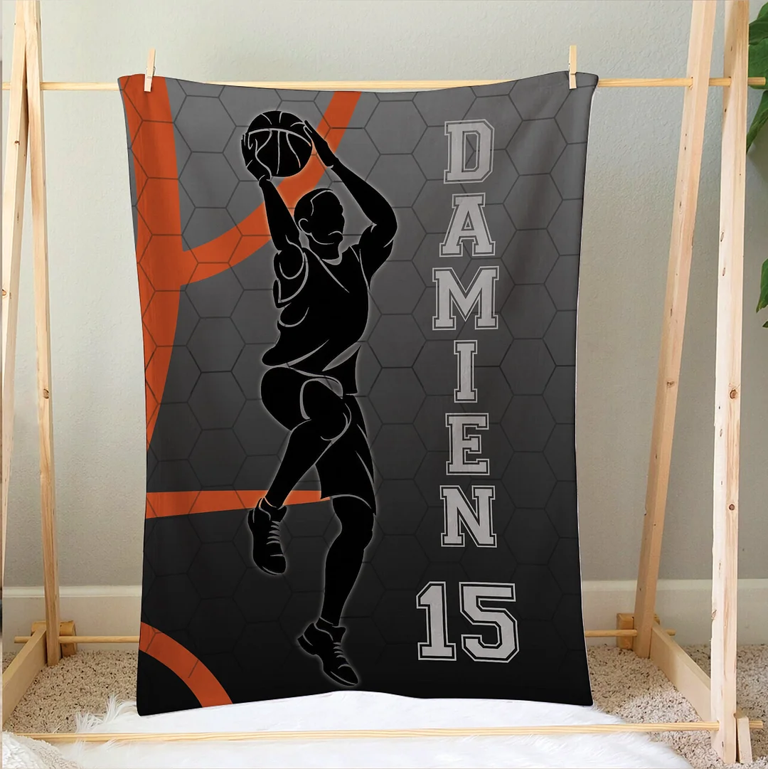 Personalized Basketball Blanket, Basketball Player Soft Cozy Blankets | BKKid442