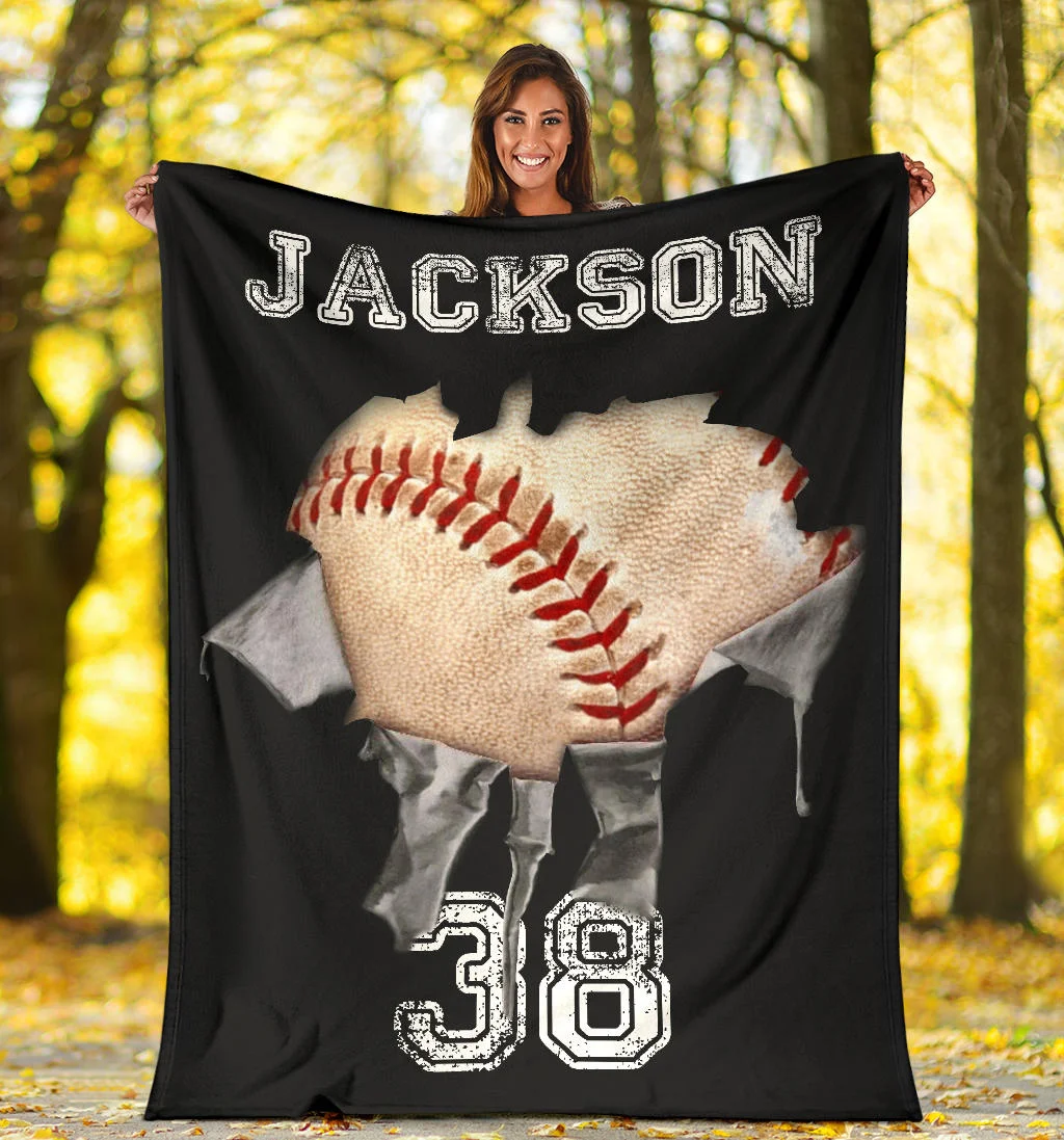 Personalized Baseball Blanket, Baseball Boy Sherpa Fleece Blanket | BKKid492