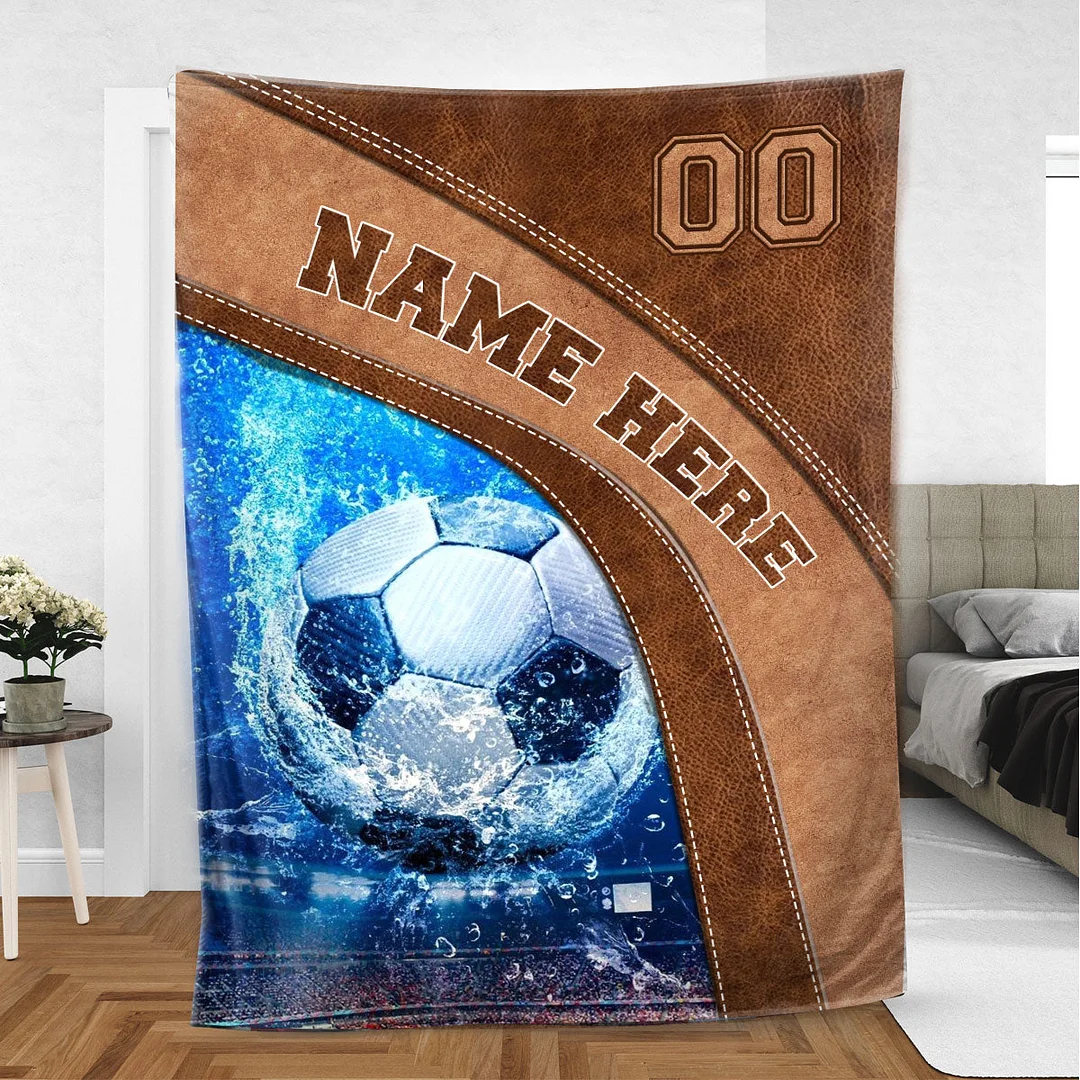 Personalized Soccer Blanket, Soccer Ball Sport Lover Gift Sherpa Fleece Blanket | BKKid554