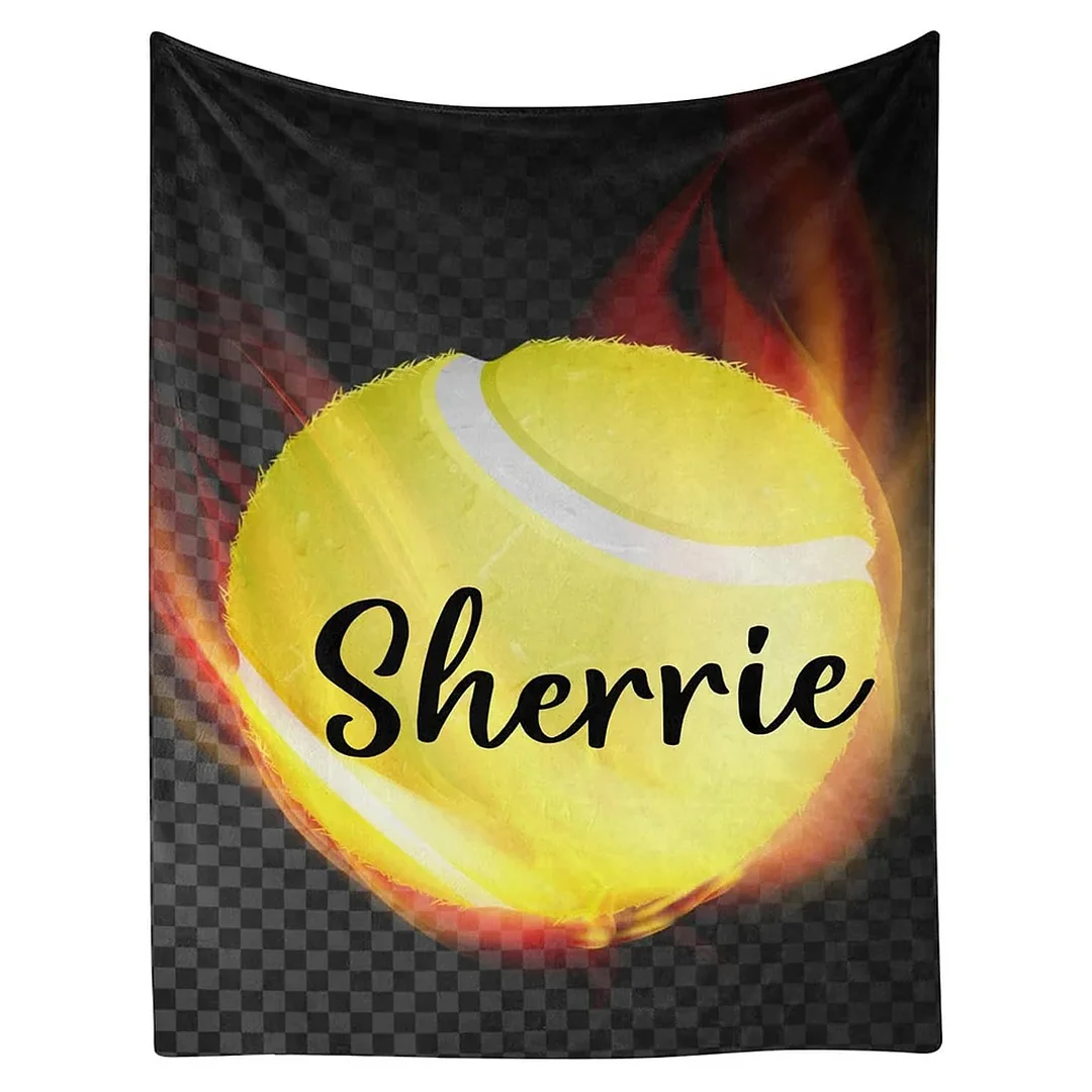 Tennis Ball Fire Personalized Blanket with Name Blankets for Men Women Birthday | BKKid627