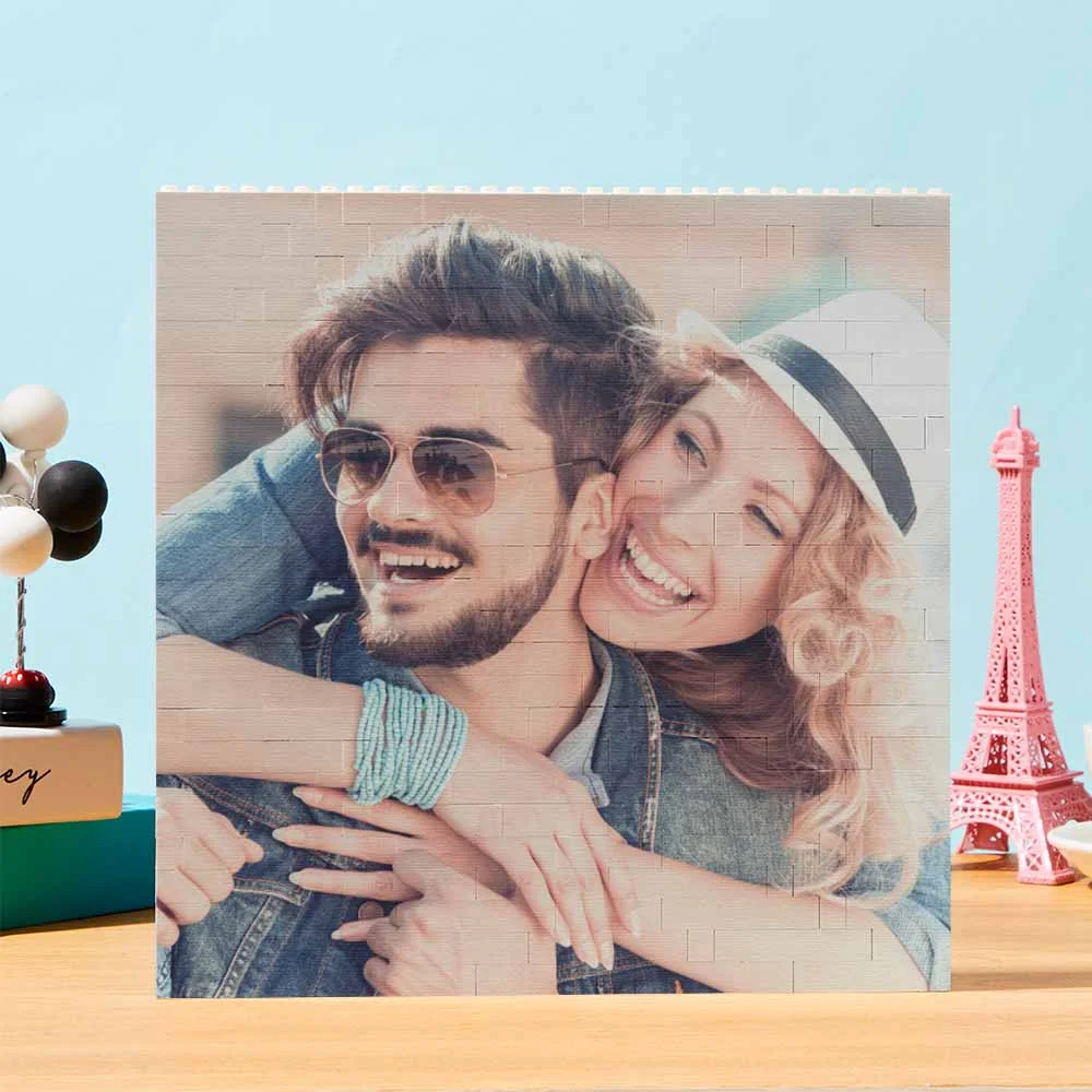 Personalized Building Brick Square Photo Block Code Custom Text Frame