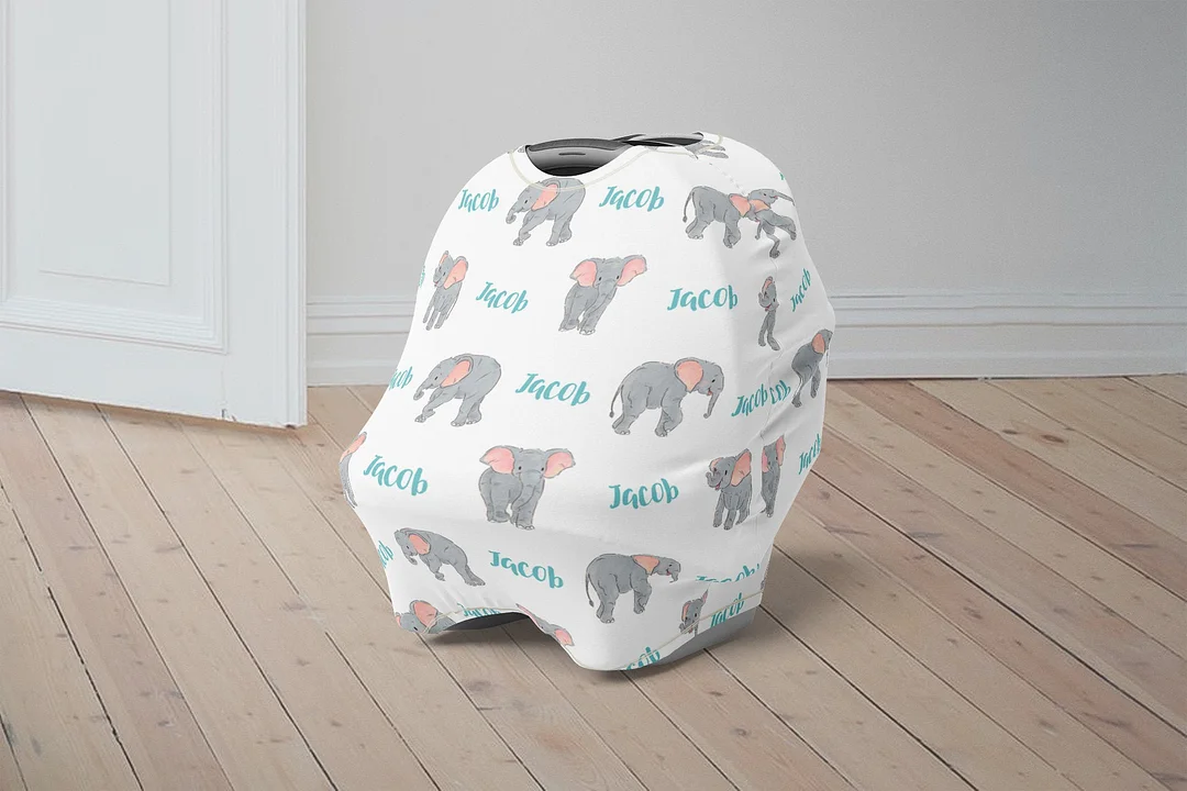 Personalized Elephant Baby Car Seat Canopy| Canopyl135