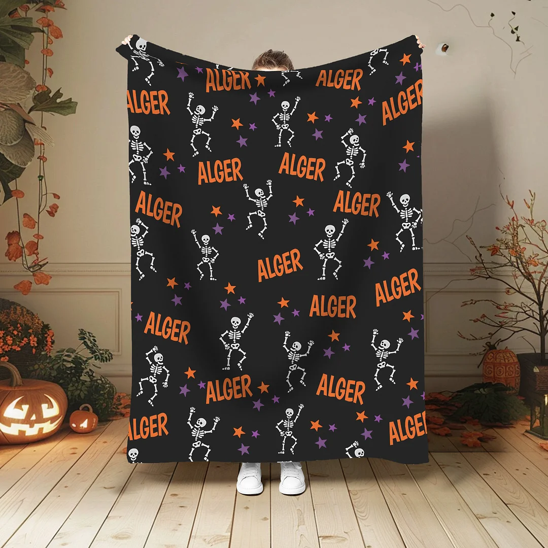 Personalized Blanket, Custom Blanket, Blanket for Kids, Custom Name Blanket, Halloween Blanket, Halloween Gift, Skull Blanket