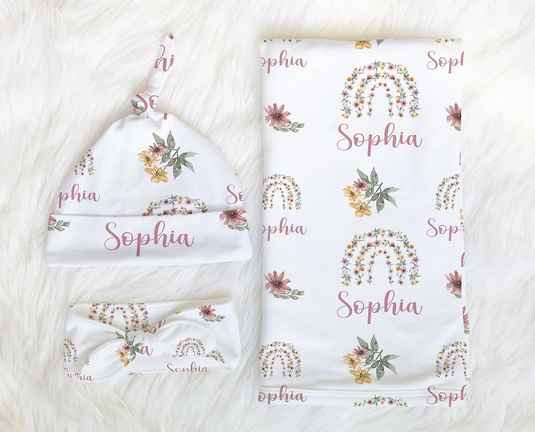 Personalized Rainbow Baby Girl Swaddle Newborn Swaddle Blanket Set|Set19